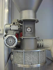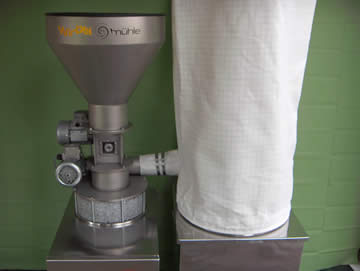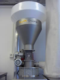Kein Zusetzen des Auswurfstutzens bei feuchtem Mahlgut! Wir garantieren, dass der Mehlauswurfstutzen der Wirbelmühle, auch bei absolutem Feinstmehl (13,5µm) nicht mehr zusetzt - selbst bei einer Mahlgutfeuchte von 17%!